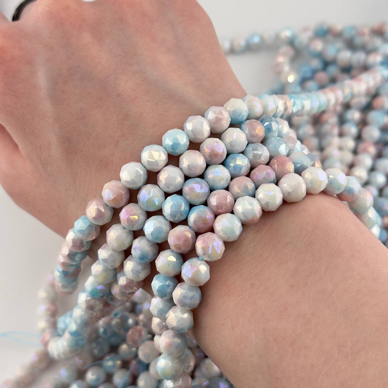 Поскольку постоянно делаю сама для себя и в подарок различные украшения, то Решила начать делать бусы, подвески и броши с использованием вкраплений и их этих бусин. Они идеальной огранки, красиво переливаются, при солнечном свете начинают играть всеми цветами радуги. Это очень красиво смотрится, особенно с учетом их нежно-розового отлива. Брала сразу партию бусин, чтобы сделать много украшений. Доставка пришла вовремя и все было отлично упаковано. Буду и дальше здесь покупать.